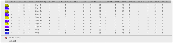 Die im Kontextmenü angezeigten Versatzkorrektur-Indizes (VCI) entsprechen der Tabelle im Toolfenster Musterparameter