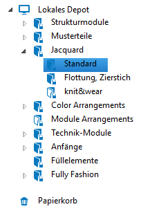 In diesem schreibgeschützten Verzeichnis Jacquard befinden sich alle Strickelemente des Typs Jacquard-Modul mit den entsprechenden Eigenschaften