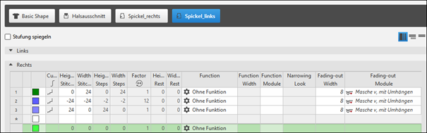 In der Rubrik Markierungen unter X und Y die Positionierung des Strickelements Start, V-Ausschnitt ändern.