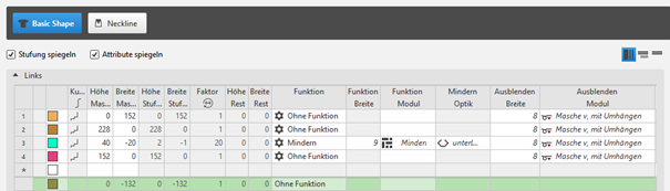 : Das duplizierte Schnittelement hat nun den Bezug zur rechten Seite des Grundschnitts, wodurch die Linientabelle Rechts angelegt wird.