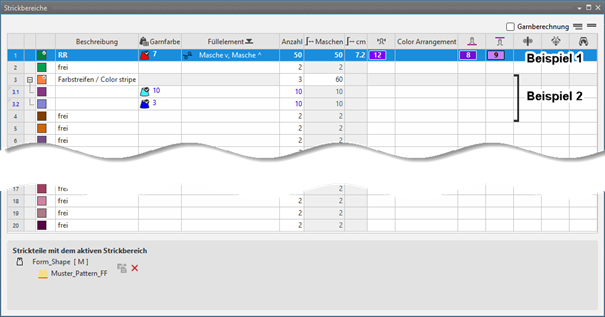 Strickbereiche anlegen: