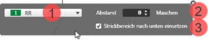 Strickbereich wird in Bezug zum Schnittlinienpunkt nach unten eingesetzt
