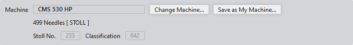 Öffnet den Dialog Maschine auswählen. Maschine aus der Stoll Datenbank oder den Eigenen Maschinen auswählen, und entsprechende Einstellungen vornehmen. |