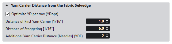 Fadenführer-Abstand vom Gestrickrand (YD)