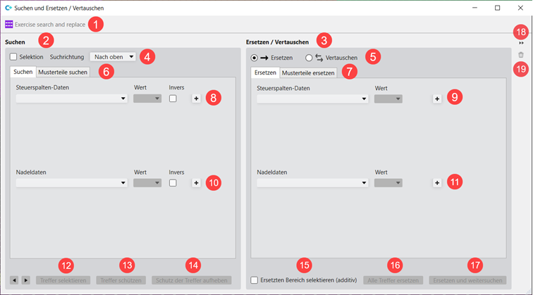 Angaben der Einsetzkriterien in der Registerkarte Ersetzen und Vertauschen für das Ersetzen in den Steuerspalten-Daten | ||