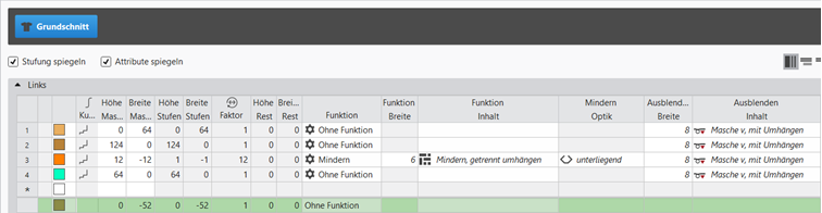 - Neue Schnittlinien in Tabelle einfügen und gewünschte Werte für den Grundschnitt eingeben.