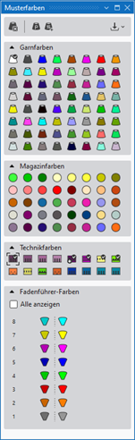 - Im Toolfenster Musterfarben die gewünschte Musterfarbe aus der Farbpalette Garnfarben auswählen: