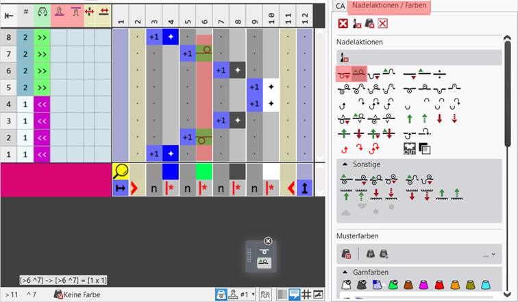 - Zum Zeichnen die gewünschten Nadelaktionen auswählen.