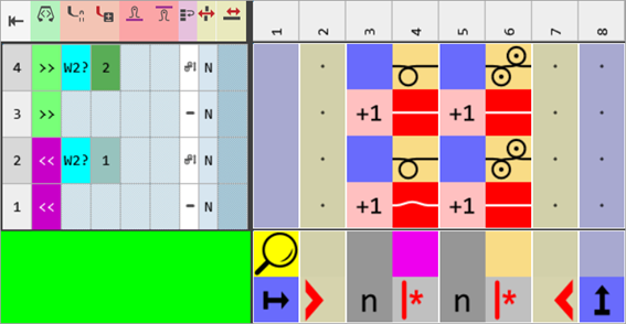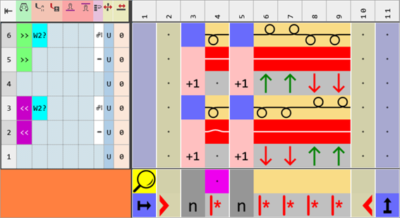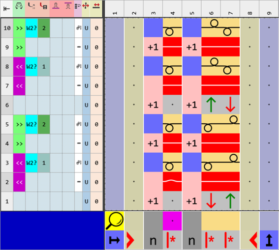 in der Multifunktionsleiste klicken. - Der Color Arrangement Editor mit dem originalen Standardstrickablauf für 2 Musterreihen wird geöffnet.