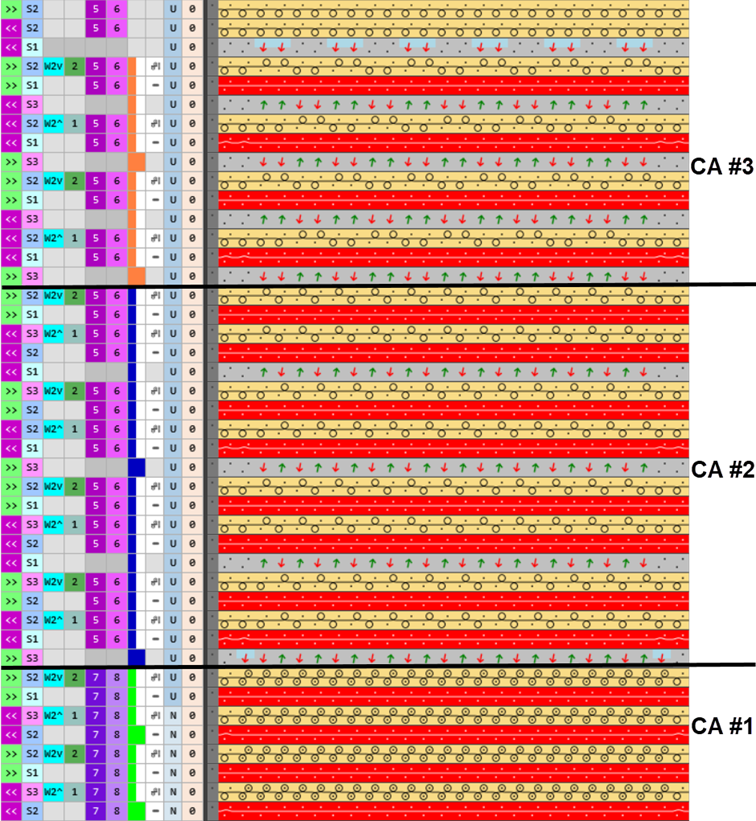 - Anschließend in der Steuerspalte Musterreihe die gesamte Höhe an Musterreihen für CA#3 selektieren.