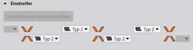 Maschine auswählen wird graphisch die Position und der eingestellte Schusseinstreifer-Typ angezeigt.