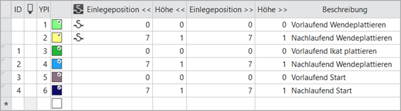 - Plattier-Offset (YPI) Tabelle öffnen und gewünschte Werte zuordnen.