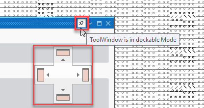 Das Fenster ist andockbar und beim Bewegen erscheinen die Schaltflächen für das Andocken.