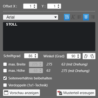 Text und beliebiger Garnfarbe (z.B. Garnfarbe #3) erstellen.