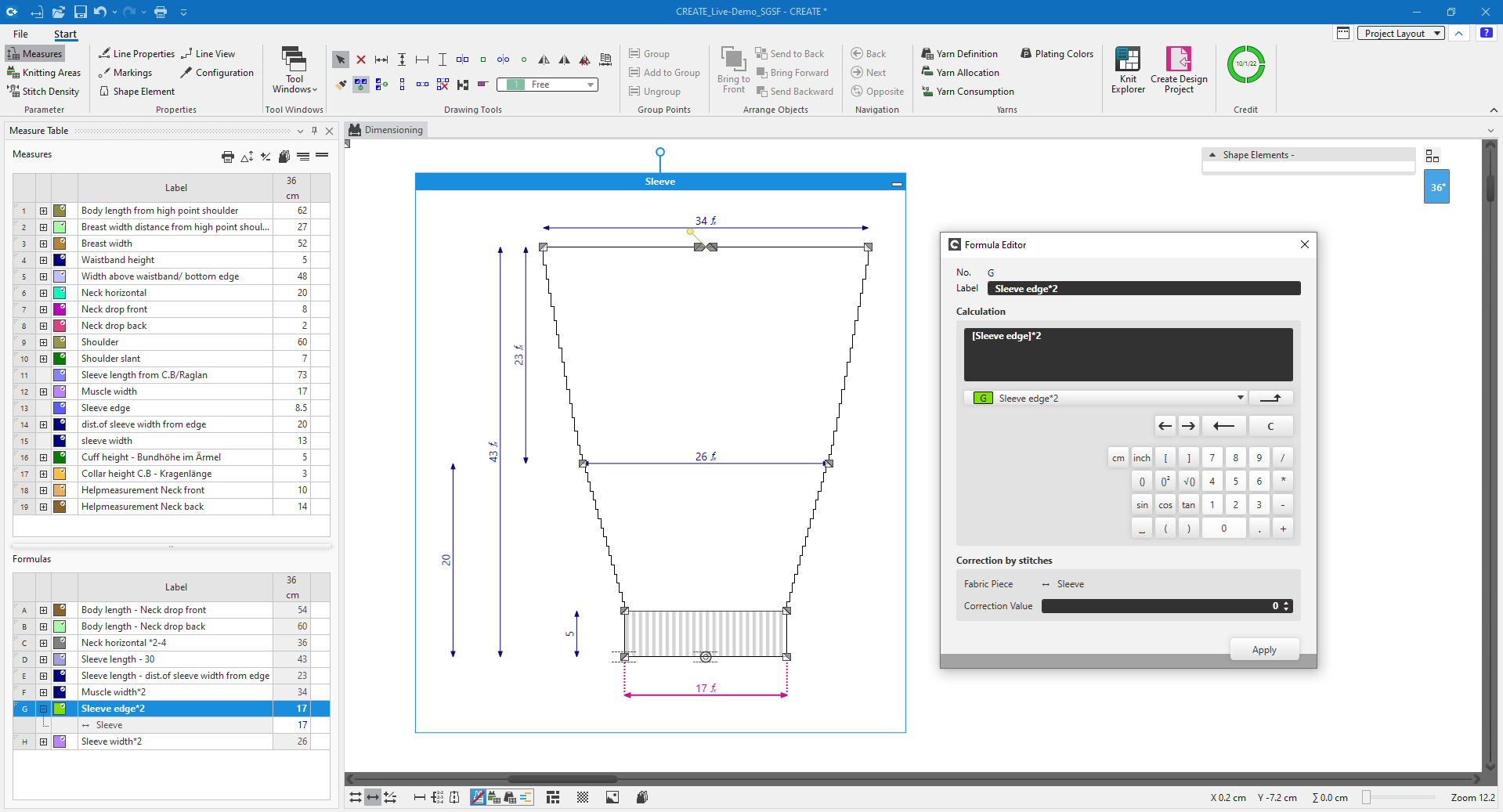 To change the underlying dimensioning, select another formula in the drop-down list box.
