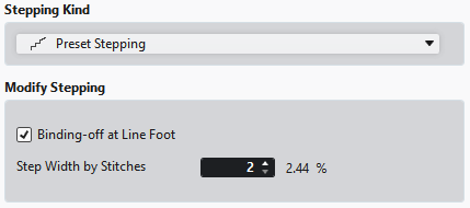 Enter the step width at the line foot in stitches. |