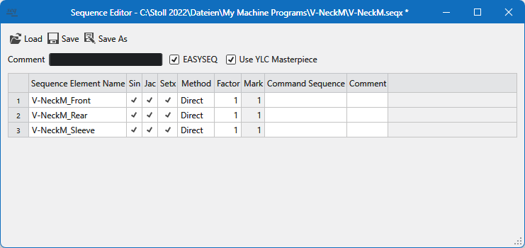 Pattern Tool Window - Create the knitting program for all patterns of the sequence.