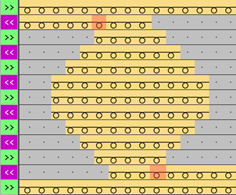 El elemento de tisaje es dependiente de la dirección de carro y debe ser entrado en la correspondiente pasada de muestra en la Muestra de diseño.