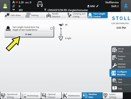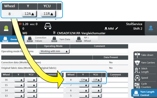 En el editor de Setup usted indica cuál de las ruedas de medición debe trabajar con cuál guiahilos (Y) y unidad de control del hilo (YCU).