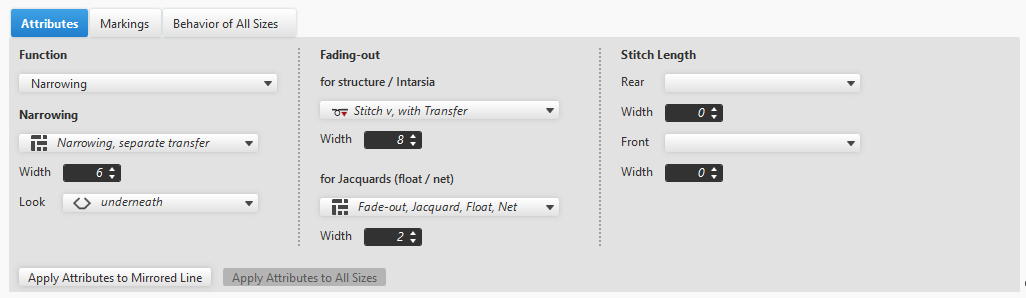 ¡NOTA! You can transfer the adapted functions onto a mirrored line with a simple click on the 'Apply attributes for mirrored line' button.