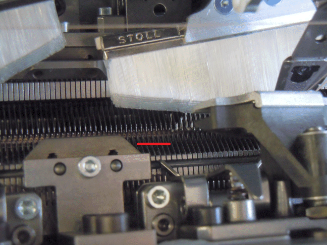 Newly inserted weft yarns will not be held securely below the needle crossing (crossing point of the supporting surfaces of opposite needles), as they are not enclosed by the fabric. Raising the needles earlier by the transferring curve allows to "lock" the weft yarn in the needle bed gap until the following stitch row is knitted.