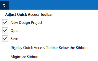 Using the drop-down menu you can display and hide some commands in the quick access toolbar.