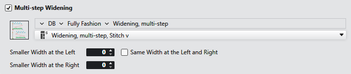 Ambos lados son igual de estrechos. Cuando la selección está activada, entonces Más angosto a la der. aparece en gris. |