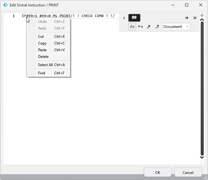 Make your changes of the selected Sintral instruction there.