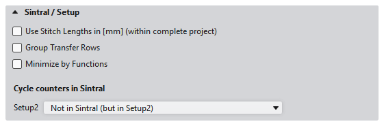 Select where the cycle counters should be entered into the knitting program: Before or after the knitting program, |