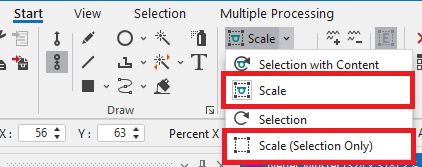 - You can scale the size of a selection or of a selected pattern element by this function.