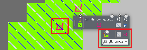 Tool applies to shape color #5 / widen the shape edbe by 1 / reduce the shape edge by 1 / set the shape edge to the selected width - The shape symbol will be shifted according to the selection.