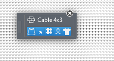 The example shows the needle action above the cable module. - Note: Shape edges and shape markings in use are shown in the Símbolos de forma rasterizada section of the Acciones de la aguja tool window.