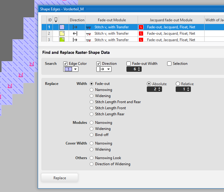 - You can replace the module at the shape edge of within the whole fabric piece.