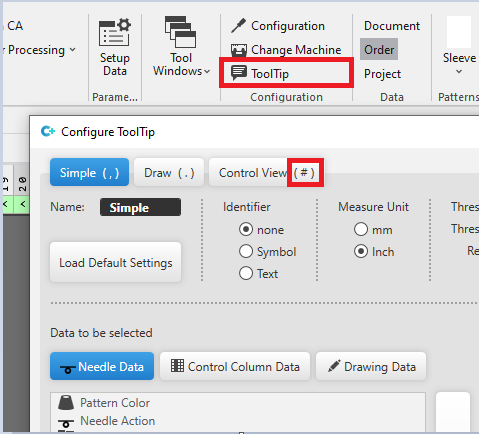 - By the F7 key at the cursor position (left marking of the image), the shape data will be applied to the user control and the tool appears (right marking of the image).