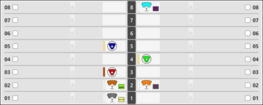 : Los guiahilos son posicionados automáticamente en los carriles del guiahilos por especificaciones estándar STOLL y son tomados en cuenta en la determinación de la posición inicial del guiahilos durante Procesamiento técnico. - Colores de los guiahilos