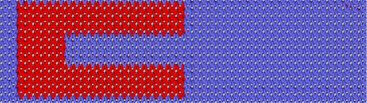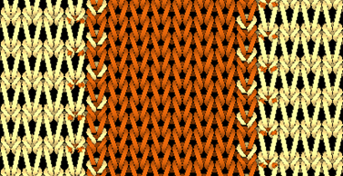 Ejemplo: NINGÚN ligamento de Intarsia entre dos campos de color | ||