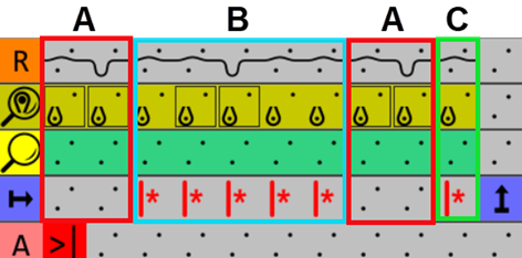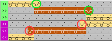 Indicación para la inserción del módulo Ligamento en el borde izquierdo del sector de color dependiendo de la dirección del carro