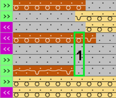 En el canto derecho del campo de color ((1)) NO se entra un ligamento de Intarsia. | |