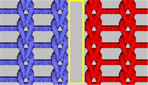 Con la ayuda del 'Ligamento de Intarsia' se interconectan dos sectores de tisaje adyacentes (sectores de color).
