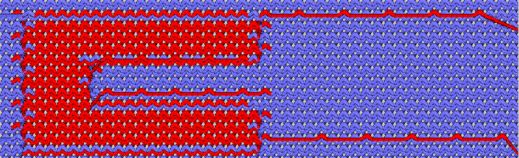 Conexión en el canto izquierdo de un sector de color a su campo de color izquierdo, adyacente. Cada campo de color es conectado con el campo de color adyacente. Esto resulta en un canto cerrado entre los campos de color.