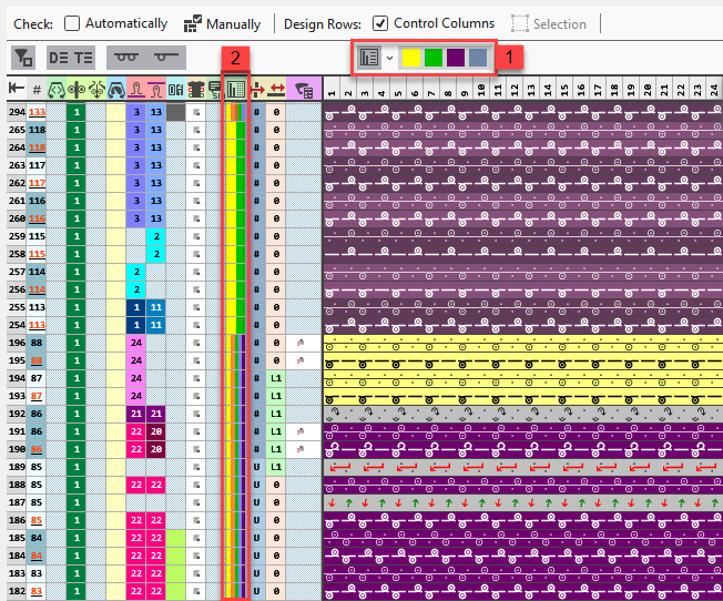 Aplicar datos de columnas de control a la pasada de diseño . If control column data is already defined for the technical rows, then they are applied to the design rows when activating If |