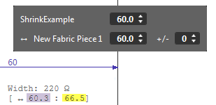 Ejemplo con 10% de disminución por elasticidad y medida de confección de 60 cm: