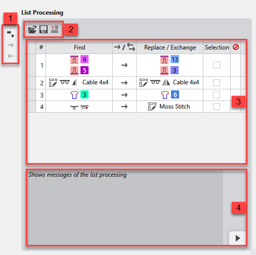 Shows the messages of the started list processing. |
