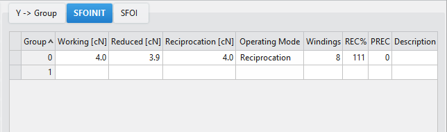 The SFOINIT tab contains the settings for the initialization of the feed wheels. The settings from the SFOINIT tab is effective as long as no SFOI entry is assigned via the control column.