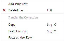 Context menu on the entries (correction by groups)