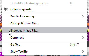 Exportar como archivo de imagen... context menu on the design view of a pattern