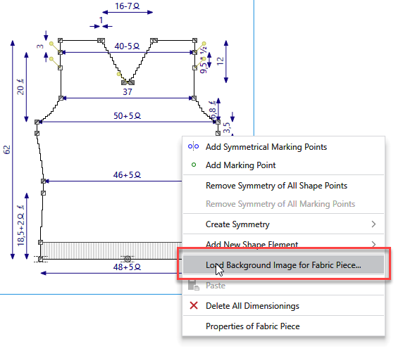 - If the image is loaded for a fabric piece, then it will be inserted corresponding to the stitch density defined in the shape.