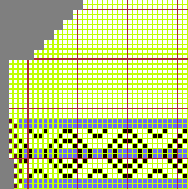 - If the knitting element is selected and is at the cursor, then the background is half blue and the other half is light blue.