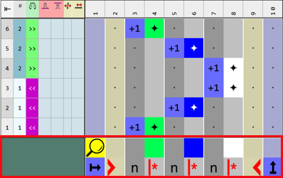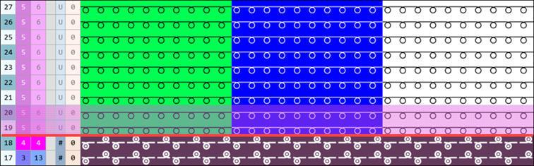 en la cinta de opciones. - El Editor de Color Arrangement se abre de las pasadas de muestra seleccionadas con la visualización del 'Secuencia de tisaje estándar para Intarsia'.