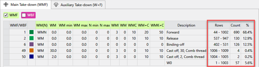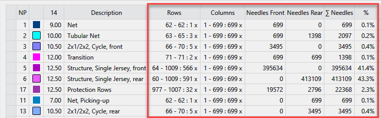 Shows the total quantity of needles of the rear needle bed with this entry. | |